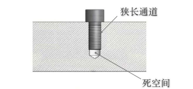 真實的泄漏可以通過檢漏找到,放氣也可以通過清洗真空腔體內(nèi)表面而解決,而虛漏一旦產(chǎn)生,很難被發(fā)現(xiàn),需要在設(shè)計和制造時盡量避免容易產(chǎn)生虛漏的結(jié)構(gòu)或工藝,如上圖中的螺紋連接(一定要用的話可以使用空心螺栓),很長的狹縫或毛細管,兩側(cè)滿焊的腔體焊接(較厚的殼體建議真空側(cè)滿焊大氣側(cè)斷續(xù)焊)等等。